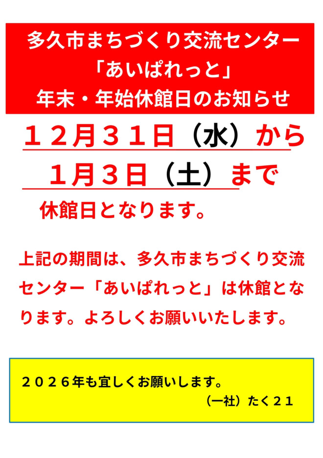 ❏ あいぱれっと 12月31日(水)~1月3日(土)まで
