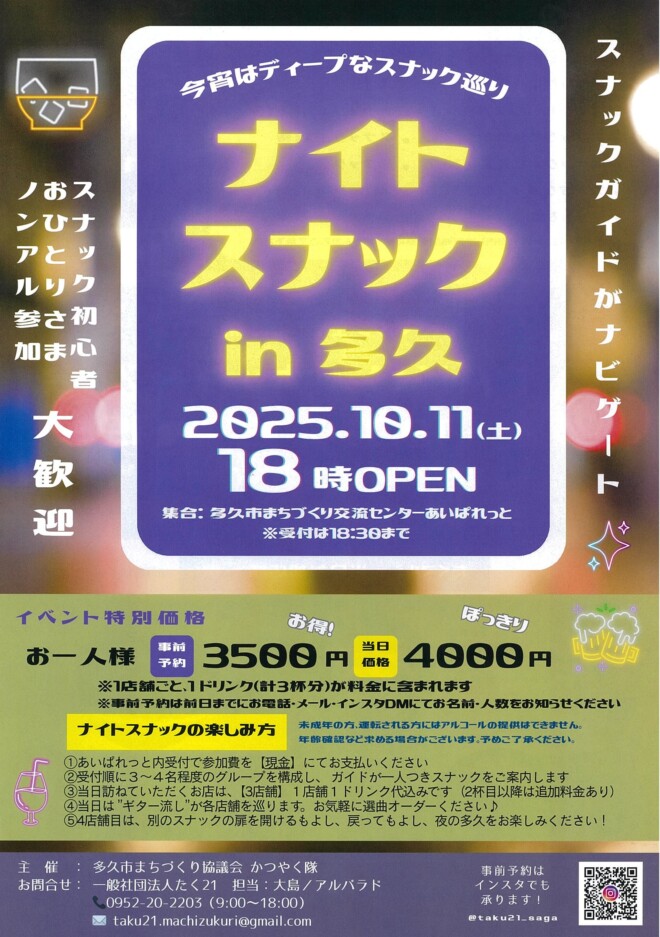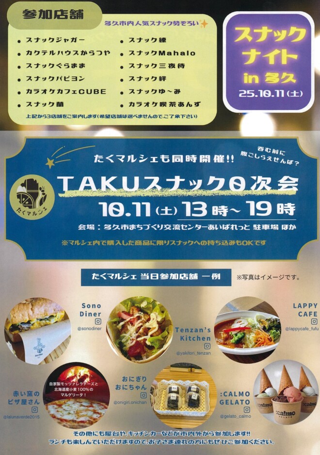 10月11日(土) 「ナイトスナックin多久」「たくマルシェ」を同時開催!!