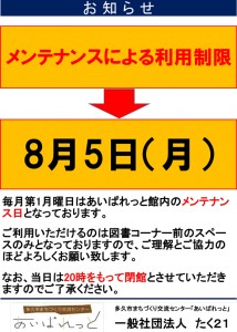 利用制限のお知らせ(8月5日)